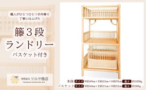 📣📣📣 山形市より✨人気のお礼の品のご紹介です✨ 置く場所を選ばない 手作りならではの、暖かい温もりのある仕上がりです。 🟠籘3段ランドリー バスケット付き FZ25-972🟠 天然素材「籘」を使い、職人がひとつひとつ手作業で、曲げ・編み・巻きを 行って丁寧に仕上げたラックは、丈夫で軽量なため、 お掃除のときも簡単に移動が出来て便利です。 付属品のバスケットは、単体でも便利に使用できます。 高さが約95cmで、下部の2段には(付属のカゴ1個)が収まり、スペースを有効に活用できます。 *.。.*゚*.。.*゚*.。.*゚*.。.*゚*.。.*゚*.。.*゚ 籐3段ランドリー サイズ ・本体 W約49cm、D約33cm、H約95cm ・付属バスケット W約44cm、D約31cm、H約22cm 重さ ・本体 約3200g ・付属バスケット 約500g *.。.*゚*.。.*゚*.。.*゚*.。.*゚*.。.*゚*.。.*゚ 事業者:有限会社ツルヤ商店