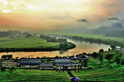 韓国の伝統様式で建てられた「道の駅とざわ 高麗館」は、韓国との友好の象徴として誕生しました。館内ではチマチョゴリの試着体験や本格的な韓国料理を味わえるほか、地元戸沢村の農産物や韓国雑貨なども豊富に取りそろえられています。