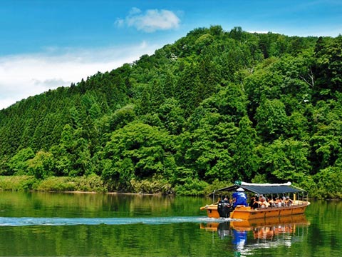 戸沢村の代表的観光名所「最上川舟下り」は、船頭さんの語りや最上川舟唄とともに四季の絶景を楽しめる人気体験です。春は桜並木、夏は青々とした新緑、秋は色鮮やかな紅葉、冬は雪景色と、訪れるたびに異なる自然の表情が旅人を魅了します。