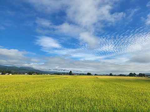 飯豊町は、“ご「飯」が「豊」かな町”と書いて「いいでまち」と読みます。町名の由来でもある飯豊連峰から流れる白川が町内を貫流し、清流沿いに豊かな稲作地帯が形成されています。清らかで滋養豊かな水源が育てるつや姫などのブランド米の美味しさには定評があり、たくさんの人々から愛されています。