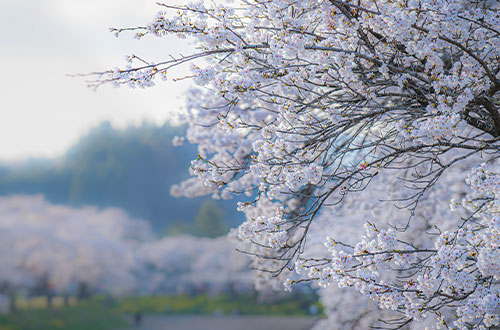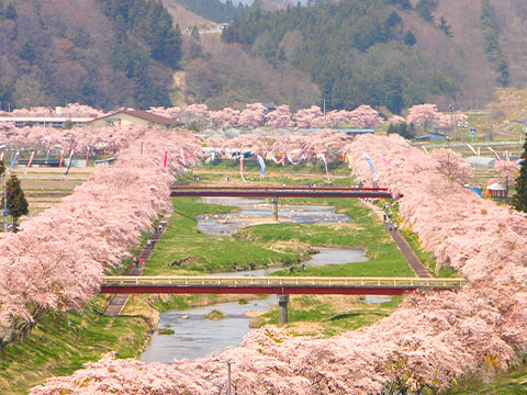 「わたしたちの郷土を美しい桜の里に、そしてこの桜のもとに郷土の和合を」との願いを込め、夏井地区、南田原井地区の方々が夏井川の両岸5kmにわたり、ソメイヨシノの苗木1,000本を植樹したのが、今日の夏井千本桜です。