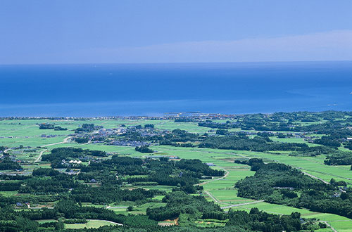 新地町は、西に多くの登山客が訪れる町のシンボル的存在の「鹿狼山」があり、太平洋側には遠浅の澄んだ青い海と美しい砂浜が続き、平地には市街地や田畑、果樹園が広がります。海も山も里もあり、どこに行ってものどかな景観が広がります。総面積は46.70㎢、町域は東西7.2km、南北6.5kmと、町を一周してもあまり時間がかからないので、ゆっくりと観光を楽しんでいただけます。