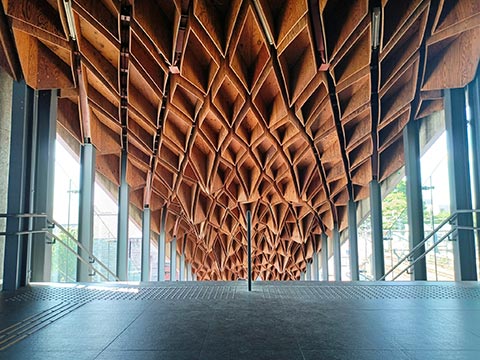 JR宝積寺駅の駅舎は、建築家の隈研吾氏によってデザインされた近代的な建物で、2008年には、国際的な鉄道デザインコンペティション「ブルネル賞」にて奨励賞を受賞しました。駅前には、同氏が「光と風が通り抜けるイメージ」で設計した「ちょっ蔵(くら)広場」があり、大谷石を使用したモダンな建物が特徴的です。