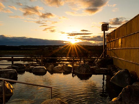 肌がなめらかになることから「美人の湯」とよばれる馬頭温泉郷は、那珂川の清流を眼下に大・小の温泉宿が点在しており、身も心も美しくなると人気を博しています。多くの温泉は西向きで、夕刻になれば、紅く揺れて沈む夕日を眺められるため、「夕焼け温泉郷」とも呼ばれております。