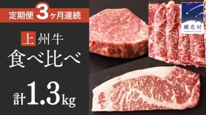 贅沢な味わい、浅間ミートの上州牛を3ヶ月連続、定期便でお届けします。 こちらのセットは、毎月、様々なお肉を楽しみたい方におすすめです。 1回目・・上州牛 リブロース すき焼き 400g 2回目・・上州牛 サーロインステーキ 200g×2枚 3回目・・上州牛 ヒレステーキ 100g×5枚 お肉の専門店、浅間ミートから、真空パックの冷凍便でお届けいたします。 当店がこだわりぬいた、群馬県産上州牛を、ぜひご自宅で。