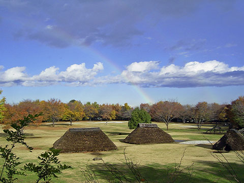 縄文時代前期の代表的な貝塚「国指定史跡水子貝塚」の保存と活用のため、整備された公園です。隣接する水子貝塚資料館では縄文土器などを展示しているほか、火起こし体験やまが玉づくりなどの体験型イベントも行われています。