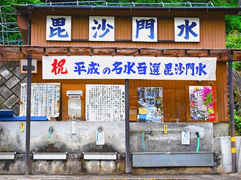 白石山(別名・毘沙門山)の麓から湧出する毘沙門水は、カルシウム分とミネラル分が豊富な自然水で、1日の湧出量は約1,000tにも及ぶ名水です。毘沙門水は小鹿野町の伝統行事にも使われるほか、しっかりと衛生管理がなされ、飲み水や生活用水として多くの人に親しまれています。