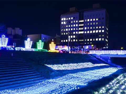 天の川イルミネーションは豊田川沿いの自転車道路にアーチ型のイルミネーションが点灯し、織姫や彦星のような幻想的な空間を楽しめます。また、ステージイベントの開催や周辺で飲食店やキッチンカーなどが出店し美味しいグルメも楽しめます。