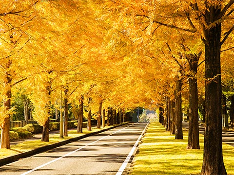 東金市季美の森のメタセコイア並木。紅葉シーズンに一見の価値があります。