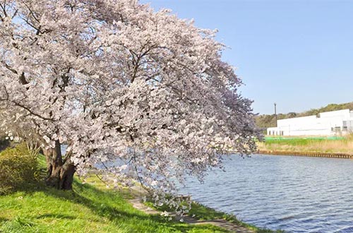その新川には、千本以上の桜並木が続き、釣りや散歩、サイクリングなどを楽しむことができます。