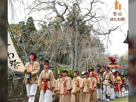 現代の人々が忘れている古代の心の豊かさやすばらしさを振り返り、また思い起こすために1982年から始まった祭です。地元の小・中学生などが古代人に扮し、殿塚・姫塚、芝山仁王尊、芝山公園等で儀式やパレードを行います。町内で多くのはにわが出土しており、古墳時代やその時代に生きた古代人とはゆかりが強い芝山町ならではの祭、必見です。