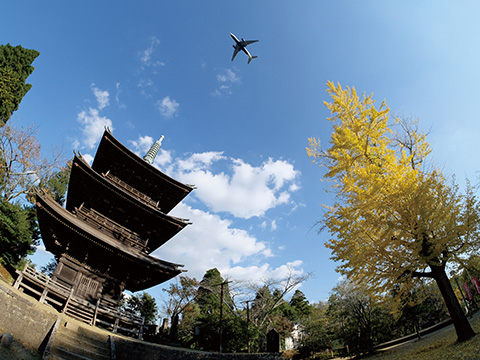 千葉県北東部、北総台地のほぼ中央にある芝山町(しばやままち)。日本の空の玄関、成田国際空港に接するこの町の空には、世界各国の飛行機が飛び交います。古墳が多いことでも知られ、埴輪をはじめ、数多くの遺物が発掘されました。11月に町を挙げて行う「芝山はにわ祭」では、色とりどりの衣装を着た古代人が現代に降臨します。町の面積の大半を農地が占め、四季折々の野菜や花、里山、田畑が風景を彩ります。町が見せる多彩な顔、宝の数々を、芝山仁王尊のお仁王様が見守っています。
