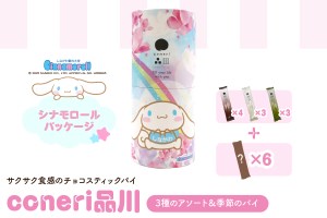 しながわ観光協会との共同開発で誕生👏✨ そんな中で起用したのが、品川区の観光大使をつとめているシナモロール🌈🐶 パッケージデザインには、しながわシナモンと、品川区の花サツキ、そして、希望や幸せの象徴 これからも、お菓子を通じて品川の魅力を品川の皆様と一緒に広めていきたい。 こねり品川は、もっとおいしく、自由に、楽しく。 パイのある幸福な生活をお届けします。 【3種のアソート(シナモロール)】とその季節に合わせた期間限定の【季節のパイ】と一緒にお届けします🌸