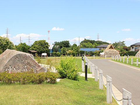 弥生時代後期の環濠集落で、ほぼ完全な形で出土した国指定史跡。遺跡は埋め戻されており、神崎遺跡公園として整備されています。公園には環濠等の位置表示や遺跡の説明板があり、散策しながら歴史を学ぶことができます。隣接する神崎遺跡資料館は1800年前の土器や実物大の環濠の模型が展示されています。