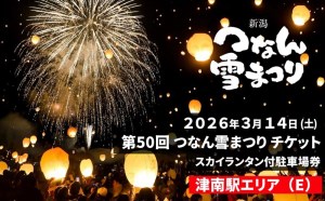 2026年3月14日(土)開催、第50回つなん雪まつり。 本チケットは、ふるさと納税の返礼品として手に入る、スカイランタン付駐車場チケット(津南駅エリアE)です。 雪に包まれた津南の夜空へ、一斉に放たれる無数のスカイランタン。 静かな冬の空に光が浮かび上がる光景は、写真や映像では伝えきれない、この場所でしか味わえない感動です。 昼はスノーモービルや雪上バイクなど雪国ならではの体験、夜はスカイランタン打ち上げで一日を締めくくる、非日常の冬時間。 チケット1枚で、スカイランタン1個引換え、普通車または軽自動車1台分の駐車、露店で使える500円分クーポンがセットになっています。 駐車場は完全予約制。会場へは有料シャトルバス(中学生以上1,500円)をご利用ください。