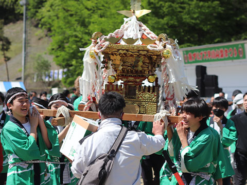 毎年、新緑の5月3日には『山菜まつり』、紅葉の秋には『紅葉と食まつり』が催されます。山菜まつりでは、タラの芽やコシアブラといった春の味覚の山菜、紅葉と食まつりでは町内でとれた野菜を中心に、早川町の特産品が大集合します。大自然の中で季節を感じながら旬の味覚を楽しめる他、歌謡ショーや南アルプス白鳳太鼓の迫力ある演奏などもお楽しみいただけます。