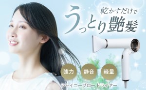 商品名 シャイニーブロー ドライヤー 型番 HHD-1300W カラー ホワイト 電源 AC100V 50/60Hz 消費電力 1200W (強風/高温) 電源コード長 約1.8m 寸法 幅200 x 奥行48 x 高さ236mm(セットノズル除く) 質量 約480g(セットノズル除く、電源コード含む) 付属 セットノズル 保証 1年 ・長寿命・強力・軽量・静音 次世代モーター搭載。 ・3段階の風量調節で思い通りの仕上がりに。 ・髪の状態に合わせて3段階の最適温度で乾燥できます。 ・温風・冷風を自動で切り替えるオートモード機能搭載。髪へのダメージを保護します。 ・クールモードで髪のキューティクルを保護し、スタイリングをキープ。 ・髪を巻き込みにくい特殊構造の吸込口。 ・マイナスイオンが潤いを与え、しっとりまとまりのある髪に。 ・温度・風量・各モードを光るアイコンでお知らせ。 ・マグネットの力で簡単に取り付け、取り外しができるセットノズル。 ・逆噴射でフィルターに詰まったゴミを飛ばすクリーンアシスト機能。 ・折りたたみハンドルでコンパクトに収納。 配送不可地域:北海道、沖縄、離島