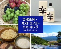 坂城町の魅力を知っていただける観光振興イベントとして、今年度初開催いたします。 信州さかき 伝統食×発酵食×スイーツで“カラダとココロを整える” 人々の暮らしの温もりがそっと息づく、どこか懐かしくて心やすらぐ街並み、信州の大地を悠々と流れる「千曲川」、里山と秋空の向こうに北アルプスを望みながら、ゆったりと町をめぐり、江戸時代からこの地で栽培されてきた伝統野菜「ねずみ大根」を使った辛味と風味がクセになる「おしぼりうどん」、ワイン、味噌、漬物、チョコレートなどのこの町で育まれた発酵食、採れたてぶどうの食べ比べや、坂城の恵みスイーツセレクションなど、坂城町の魅力を味わい尽くすことができます。 イベント詳細・お申込みは、温泉ガストロノミーツーリズム 公式サイトからご確認お願いします。「坂城町 温泉ガストロノミー」で検索