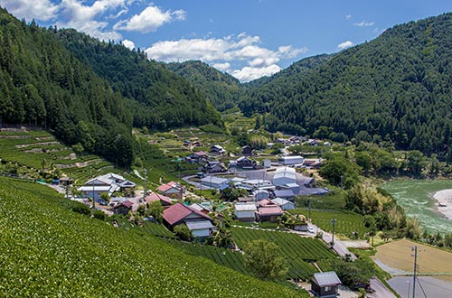 山間に流れる清流が生み出す独特の気候風土を生かしたお茶の栽培が盛んで、約400年以上昔から作られてきたと言われています。