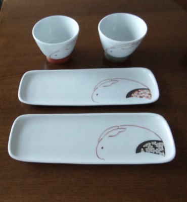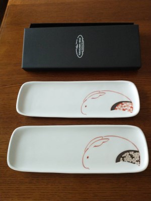 明治期のデザインである愛らしいうさぎと桜をモチーフにしたお皿です。