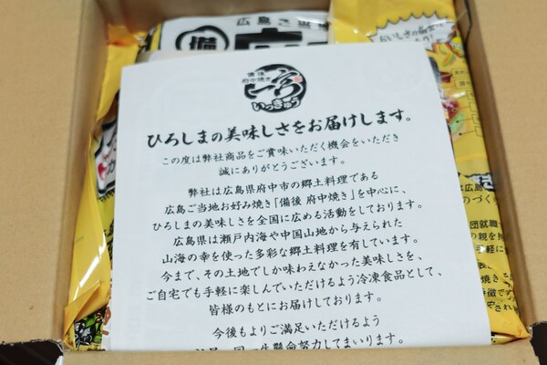 直ぐに食べれて広島の味を感じる事が出来ました、手軽で味も良く又