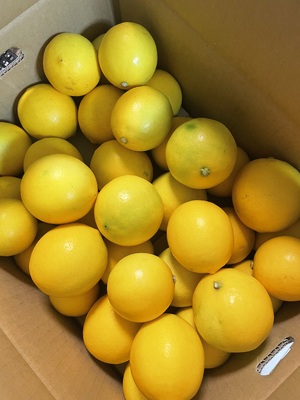 箱いっぱいに瑞々しい綺麗なレモンが入っていました。味は普通のレモンより酸味がまろやかで甘味があると思います。沢山あるのでお料理やお酒にとさまざまな使い方ができます。一部は蜂蜜レモンを作って保存します。