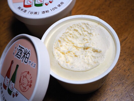 天日干しした米で仕込んだ「純米酒 谷瀬」の酒粕で作ったアイスクリームです。