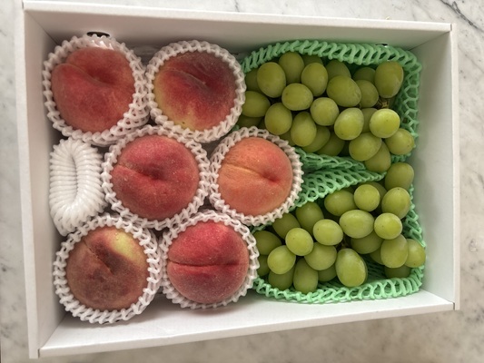 | 容量 | ■白桃 品種おまかせ(あかつき・いけだ・川中島白桃・伊達白桃・青空娘 等より1品種) 4~7玉入り ※ももの種類はお選びいただけません。 ※秀品 ■葡萄 シャインマスカット 2~3房 ※秀品 |