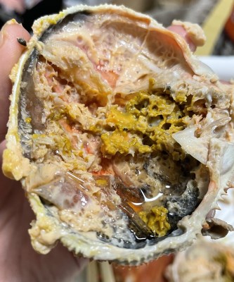 小ぶりだと思ってましたが、頑張ってほじくっても身の量は少なく、味は悪くないのですが、食べごたえに欠けます。卵や、少ないながら味噌は濃厚で美味しかったですが、家族からは不評でした。次回はもっと大きめのカ ... 続きを読む
