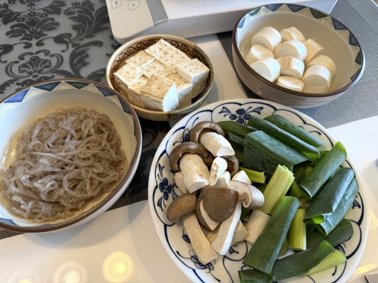 | 容量 | 京の肉(肩ロース) 300g 丹波大黒本しめじ 約8切れ 九条ねぎ 200g 生芋糸こんにゃく 200g 焼きとうふ 250g 乾燥麩 30g 京丹波産卵 4個 ゆでうどん 200g(1玉) ワイン割りした 300ml |