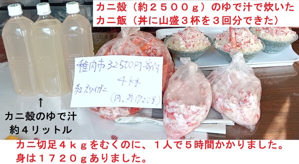 カニの重さは「グレース」(乾燥・脚折れ防止のための氷の膜)を含みます。
