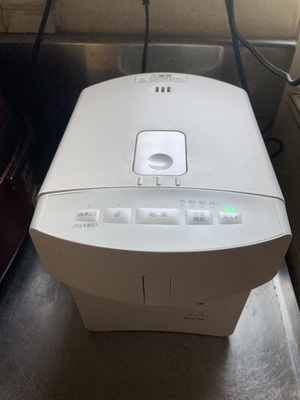 保温中のお湯を再沸とうし、カルキをとばします。