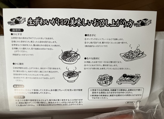 発送も注文して早々に届きありがたいです。剥いてる状態なので食べる時は容易に食べられる。かにすきでいただきましたが美味しいです。ボリュームも多いのでさまざまな料理に使えて焼きかに、蒸しかに他楽しみたいと ... 続きを読む