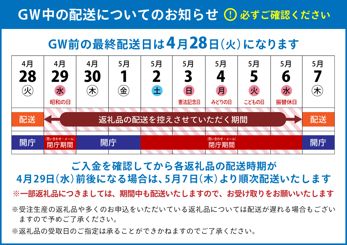 ◆ゴールデンウィークの配送に関するお知らせ【必ずご確認ください】