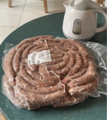 「業務用5㎏」ということでかなりのボリュームを期待していたのですが、実際は想像の遥か上を行く大きさでした。一本約120gの生ソーセージ(スモークされてない)が40数本、すべて繋がってとぐろを巻いた状態 ... 続きを読む