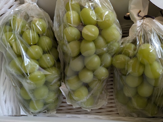 ご贈答用のシャインマスカットは主に1房が700g~1kgほどで、粒が大きく、房の粒同士隙間が無くまとまっている物がメインとなっております。