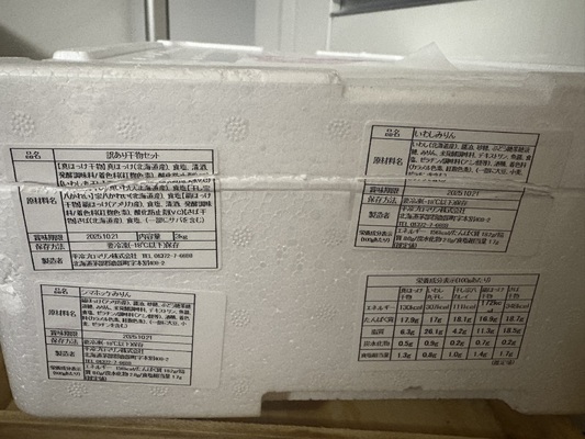 | 容量 | 訳あり干物 詰め合わせ 3kg 原材料 【真ほっけ干物】 真ほっけ(北海道産)、食塩、清酒、発酵調味料/着色料(紅麹色素)、酸化防止剤(V.C) 【いわし丸干し】 真いわし(北海道産)、食塩 【干し宗八かれい】 宗八かれい(北海道産)、食塩 【縞ほっけ干物】 縞ほっけ(アメリカ産)、食塩、清酒、発酵調味料/着色料(紅麹色素)、酸化防止剤(V.C) 【さば干物】 さば(北海道産)、食塩、(一部にサバを含む) 【真ほっけみりん】 真ほっけ(北海道産)、醤油、砂糖、ぶどう糖果糖液糖、みりん、米発酵調味料、デキストリン、魚醤、食塩、ゼラチン/調味料(アミノ酸等)、酒精、着色料(カラメル色素、紅麹色素)、(一部に大豆、小麦、ゼラチンを含む) 【縞ほっけみりん】 縞ほっけ(アメリカ産)、醤油、砂糖、ぶどう糖果糖液糖、みりん、米発酵調味料、デキストリン、魚醤、食塩、ゼラチン/調味料(アミノ酸等)、酒精、着色料(カラメル色素、紅麹色素)、(一部に大豆、小麦、ゼラチンを含む) 【縞ほっけ昆布醤油干し】 縞ほっけ(アメリカ産)、調味液(醤油、昆布醤油[しょうゆ(小麦・大豆を含む)、昆布、昆布エキス、その他]、砂糖、本みりん、その他)、食塩/調味料(アミノ酸等)、カラメル色素 |