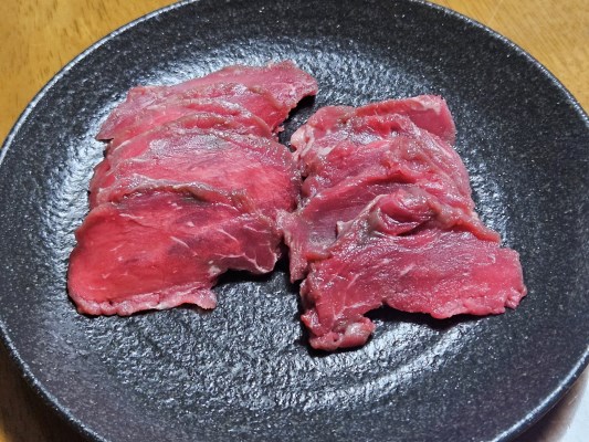 こちらの牛刺し用は赤身肉なので、脂大好き派には向かないですが、個人的にはこのたんぱく質主体の味が楽しめるのが好みです。ヘルシー志向の方にもお薦めと思います。会津の馬刺しみたいに、辛子味噌で食べても美味 ... 続きを読む