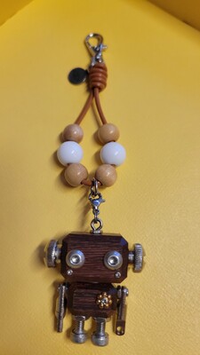 ロボットキーホルダーチャーム 紫檀(シタン) 木製 キーホルダー 手作り かわいい おしゃれ