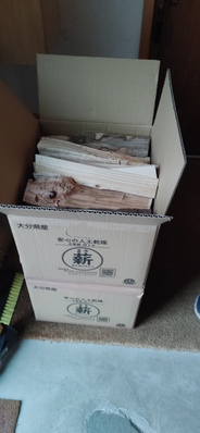 | 容量 | 重量:1箱約13kg×2箱 材木:カシ・ナラ・クヌギ・サクラ等(含水率15%以下) 本数:1箱約15?20本 薪1本の長さ:約30cm 箱外寸:280mm×370mm×335mm(約0.03立方メートル程) ※立方メートルは箱サイズ計算の為隙間や樹種の密度により実際の重量、本数は前後致します。 焚き付け木入り |