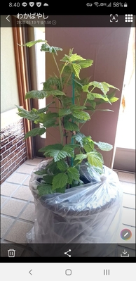この鉢植えはラズベリーを栽培しているハウスから株分けしてきたものです。植え替えの手間が省けるように9号の鉢に植えてあります。これから冬に向けて葉は全て落ちますが来春には芽吹いてきます。低温要求時間が必要ですので屋内には置かずに屋外やベランダなどに置いてください。雪が積もっても問題ありませんが、折れないように支柱は必要です。高さは鉢を含めて約50cm~約70cmです。簡易的な支柱を同梱致しますが、60cmと短いため必要に応じて別途ご準備下さい。秋田県では氷点下になるために冬季には水やりはしませんが、お住みの地域によっては鉢が乾燥するようでしたら適宜水やりをしてください。
