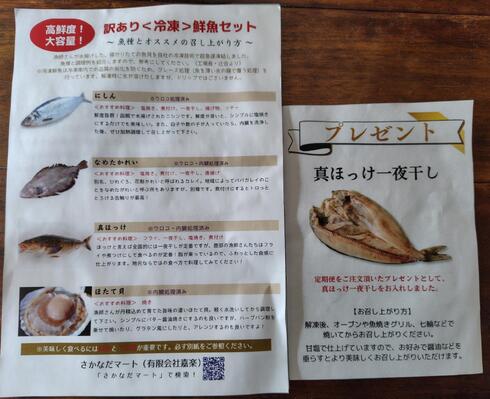 魚種・お召し上がり方を記載したリーフレットを同封いたします。