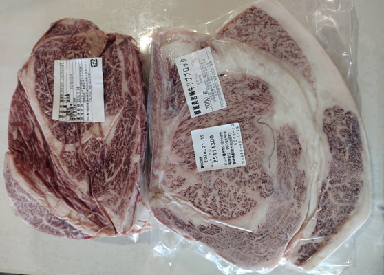 都城産で牛リブ塊肉は2件取扱いがあったので両方お願いして比較しました。