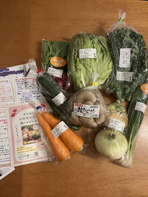 2回目のお野菜を受け取りました。1回目とは異なる野菜や、新玉ねぎなど季節を感じる野菜が入っていて嬉しいです。