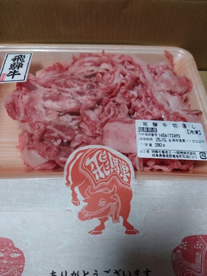 飛騨牛の贅沢な切り落としです。