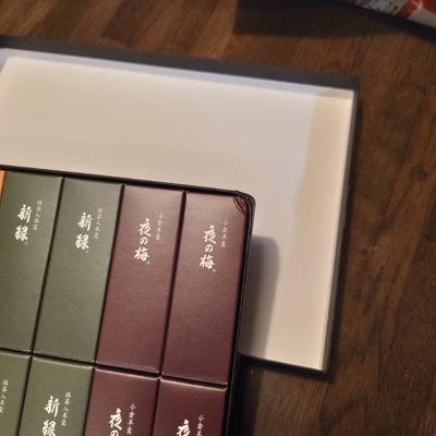 太い羊羹を切り分けるのも良いですが、こちらの小包装版では様々な味を楽しめます。