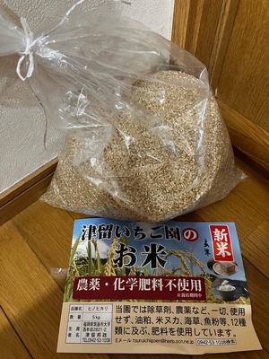 津留いちご園のお米 玄米 農薬・化学肥料不使用(栽培期間中) 5kg 【2025年11月上旬から2026年10月下旬順次発送予定】 米 お米 ご飯 九州 福岡