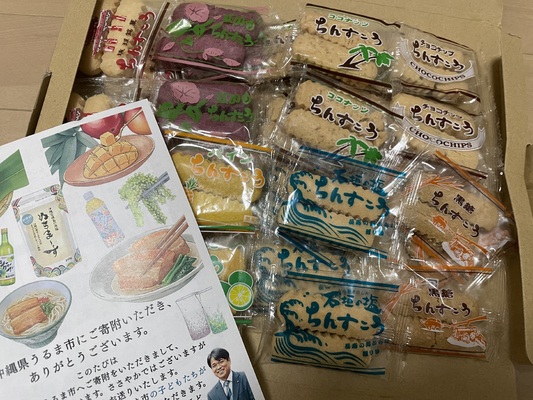 うるま市のちんすこう、初めて返礼品を頂きました。かなりの数が入っていて、食べ応えがあります。色々な味が楽しめるのがとても良かったです。子供からもまた食べたいと言われましたので、またお世話になりたいと思 ... 続きを読む