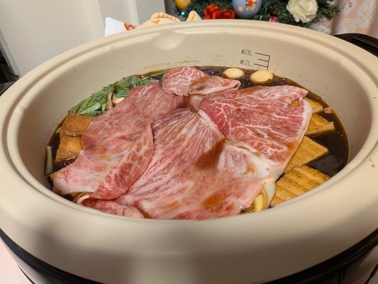 赤みとロースの食べ比べということで、それぞれ500gの計1キロという量のお肉は、1枚あたりの面積がとても広くて、大きめの鍋でも広げたら2枚乗せた時点で重なる部分が出るほどの大きさでした。もちろん1枚の ... 続きを読む