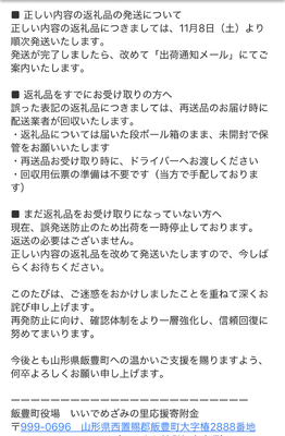 受け取った返礼品は返品、本来の返礼品と交換したいと連絡がありましたが、余計な手間暇時間もかかって最悪でした。